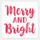 Modern Merry and Bright Red Brushed Script Holiday Square Sticker
