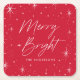 Modern Merry and Bright Script Red Holiday Square Paper Coaster