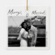 Celebrate your first holiday season together with the Modern Merry and Married Newlywed Script Christmas Ceramic Ornament. Featuring elegant script lettering and your favourite photo, this ornament adds a timeless touch to your Christmas tree. Perfect for newlyweds, it’s a heartfelt keepsake to cherish year after year.
