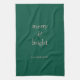 Modern Merry & Bright Christmas Holiday Green Pink Tea Towel