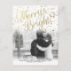 Customize this beautiful, modern, stylish, lovely and elegant vertical Christmas greetings postcard designed with faux gold text Merry and Bright with confetti on white. Please note that the gold is color print and is not an actual gold foil. Replace the template image with your favorite horizontal photo and change all the template information on both sides with your own. This design has a wording: "Wishing you a joyous holiday season and a new year filled with peace and love." but you can change the words with your own. *Photo template credit: © Aimee Custis Matching Postage Stamp can be found here: