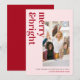 Modern Merry & Bright Pink Red Team Photo Business Holiday Card