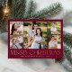 Modern Merry Christmas Burgundy Photo Collage Foil Holiday Card