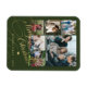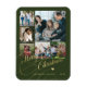 Elegant stylish Merry Christmas faux gold classic calligraphy script six family photos green holiday festive keepsake magnet with your custom personalised text.