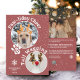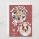 Share the joy of the season with our Paw-liday Cheer Christmas Photo Greeting Card! This modern and playful design features two adorable pet dog photos in circle masks, surrounded by festive text conveying tail-wagging excitement. The paw mark, lightly dusted with snow, adds a charming touch on an editable retro red background. Turn the card over to reveal a rectangular family photo space and space for your personalised Christmas message.