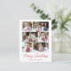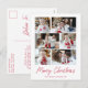 Modern holiday postcard featuring 6 of your photos arranged in a collage layout. "Merry Christmas" is displayed in a handwritten red script with your family name and the year shown below. The multi-photo holiday postcard reverses to display your return address and custom message in red lettering.