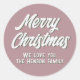 Modern Merry Christmas Script Pink Family Holiday Classic Round Sticker
