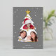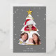 Modern Merry Christmas Tree Photo Collage Grey Foil Holiday Card