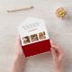 Clean, modern minimalist style red Merry Christmas custom typography with six-photo template. Panels feature additional text fields and photo templates.