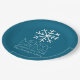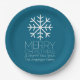 Modern Merry Christmas Winter Snowflake - blue Paper Plate