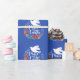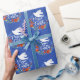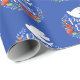 An pretty Christmas gift wrap featuring a dove in a floral wreath with the words Peace on Earth in an elegant script font. This Christmas wrapping paper is designed in royal blue, white and red. Designed for you by Blackberry Boulevard.