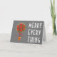 Modern and minimalist style holiday card features poinsettia decorated round topiary tree with white "Merry Every Thing" text on grey background. Back of card can be personalised