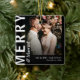 Merry & Married Photo Christmas ornament. Design features a modern typography layout, the newlyweds names and date of wedding.