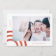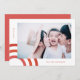Minimal and merry holiday card features a festive pink orange and red rainbow and simple Merry text with name and photo.