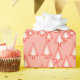 Mid-Century Modern 3-d metallic-look Christmas trees in a silky, striped gradient - coral orange and cream on a soft coral orange background