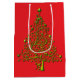 Modern Metallic Green Christmas Tree Red Holiday Medium Gift Bag