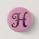 Modern Metallic Rosemaling Letter H, Pink/Purple 3 Cm Round Badge