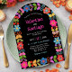 Bold and vibrant, this modern Mexican arch wedding invitation features a striking black background beautifully contrasted by a colourful hand painted floral frame inspired by traditional Mexican folk art. Rich hues of red, yellow, pink, orange, and turquoise bloom around the border, creating a festive yet elegant design. The vivid florals frame the central text area, making the details of your celebration stand out with sophistication and cultural flair. Perfect for a couple looking to infuse their wedding with joyful colour and modern elegance rooted in tradition.
