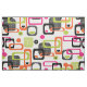 A fresh, bright, funky yet stylish retro inspired modern mid century, geometric patterned print. Pink, orange, green, black and white fabric; available in a choice of fabric styles and cut to lengths to suit your sewing and craft needs.