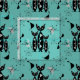 A super cute pattern of black cats, atomic starbursts and abstract shapes inspired by retro mid century designs in on lovely tones of teal, blue, black and grey.