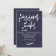 These stylish invitations to your Passover Seder feature modern script typography in white, on a midnight blue background.