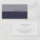 Simple, modern business cards feature a colorblock stripe background in midnight blue and light slate blue-grey with your name and business name, title or occupation. Add your full contact details to the back in a chic mix of modern sans serif and italic lettering.