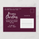 Modern minimal 1 photo burgundy script Christmas Holiday Postcard