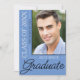 Modern Minimal 1 Photo Dusty Blue Graduation Party Invitation. Add your favourite graduation photo, personalise the trendy script and modern typography for the perfect combination of Simple and Elegant for your single photo graduation announcement keepsake. Change colours by clicking "Personalise" then scrolling down to click "Edit using design tool".