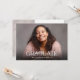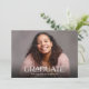 This full photo horizontal graduation invitation features a stylish typography overlay. Personalise the backside with a second vertical photo and your graduation party invitation details.