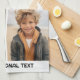 Modern Minimal 3 Photo Collage with Text Tea Towel