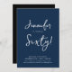 Modern Minimal 60th Birthday Script Navy Blue Invitation
