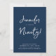 Modern Minimal 90th Birthday Script Navy Blue Invitation