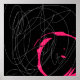 Scribble line art in black, white & magenta.