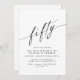 Formal 50th birthday invitations with "fifty" text in a calligraphy script. Black font on a crisp white background.
