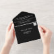 This elegant black and white wedding invitation is perfect for a modern wedding. the simple design features elegant white calligraphy on a black background.