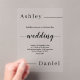 This elegant black and white wedding invitation is perfect for a modern wedding. The simple design features elegant black calligraphy on a clear acrylic background.