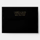 Add a finishing touch to your wedding mailings with this black and gold envelope, featuring your return address in gold typography on the flap.