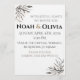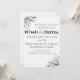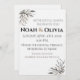 Chic black and white minimalist wedding invitation with elegant script and botanical corner illustrations, featuring fully editable couple names, wedding date, time, and venue details for a contemporary formal celebration.