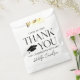 Stylish graduation thank you favour bags feature modern black serif Thank You design with grad cap accent and stylish custom text that can be personalised with the graduate's name and spelled out class year. Simple and elegant black and white design is perfect to package graduation party treats such as cookies to give guests as favours.