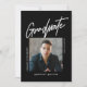 Celebrate your Graduate with this Modern Script Black Three Photo Graduation Invitation Announcement Invitation designed in black and white, with a central photo and the word "Graduation" in a modern script. This clean invitation is perfect for a male graduate like your son graduating from college. Add two more photos on the back and personalise this template with the celebration details on the back of the card.
