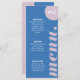 Our minimal, bold retro style wedding menu card is perfect for the trendy couple who loves standing out and making a bold statement. Our design features a bold bright blue and purple colour combo. A simple abstract arch and circle shapes create a bold look with the "menu" displayed boldly in white large font. The reverse side features a bold monogram. Designed by Moodthology Papery