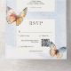 Modern Minimal Blue & Rust Butterflies QR Code All In One Invitation