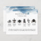 Elegant modern timeline program with soft and graceful blue watercolor stain on top. Personalise napkin on dinner image with your own initials. Modern, clean and simple style. Images in elegant black, grey and taupe tones. Ability to customise information on the back for your wedding program or any welcoming message you like.