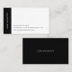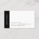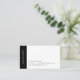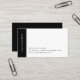 Eyecatching modern design has a minimalist feel. Business cards feature your name along the left side in white on black, with three lines of contact information to the right. Cards reverse to solid black with your name or choice of custom text centred in modern white lettering.
