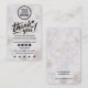 Elegant business thank you card with custom logo or other image on the front and custom text, company contact information and social media icons on the back. You can change background colour, fonts and font colours with the design tool