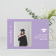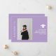 A modern minimal chic 2026 masters graduation announcement card in soft lavender, featuring classic sans serif script and customizable photograph on the front, and a customizable message in an elegant script on the back.