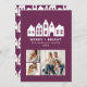 Modern minimal Christmas purple houses 3 photo Holiday Card