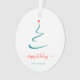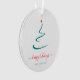 Simple, stylish minimalist holiday ornament featuring minimal christmas tree with a simple red star. easily personalised with your family name, perfect for the festive season!