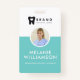 Professional, modern and minimal circle photo frame and logo vertical photo identification badge. Customise with your photo, name, title and logo. The teal colour can be changed to any colour to suit your brand, simply click personalise and click to customise further. The reverse side features logo and address.