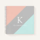 Cute geometric pastel colour block gratitude journal notebook for journalling or other purposes. Soft colours of light peach, teal and grey make for a trendy girly chic design. Personalise this with your own initial or name and make it your own. Perfect for a personalised special gift for her.